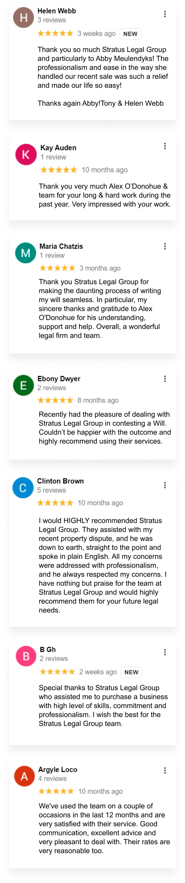 At Stratus Legal Group, we’re tired of an industry that relies on enormous retainers, ongoing billing, painful 6-minute increments, and hidden fees. So when we give you a no-obligation fixed-fee quote, we mean it – if there is any additional work whatsoever required for the probate, we’ll do it for free! It’s our way of making sure our fees are 100% fixed and transparent, so you have full confidence you’re making the best choice for your family.